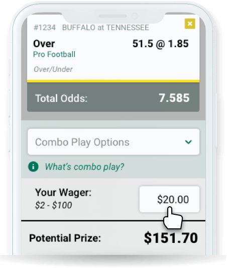 Select your wager up to $100. As you build your tickets, it displays your potential prize!